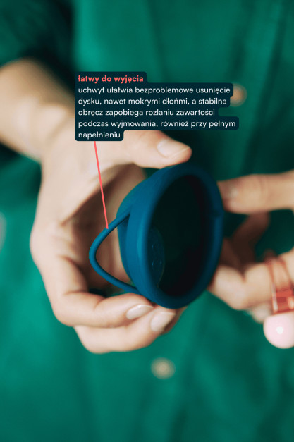 Rozwiązuje problemy jednorazowych środków: wysokie koszty, niską skuteczność, ryzyko podrażnień, zapach i generowanie odpadów. Wykonany z silikonu medycznego, nie zaburza pH ani nie sprzyja infekcjom. Jeden dysk menstruacyjny może zastąpić tysiące produktów i służyć 10 lat.